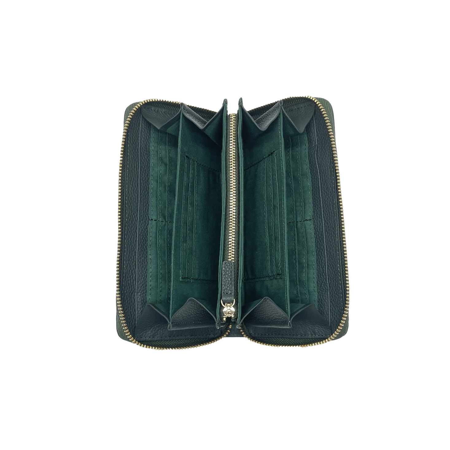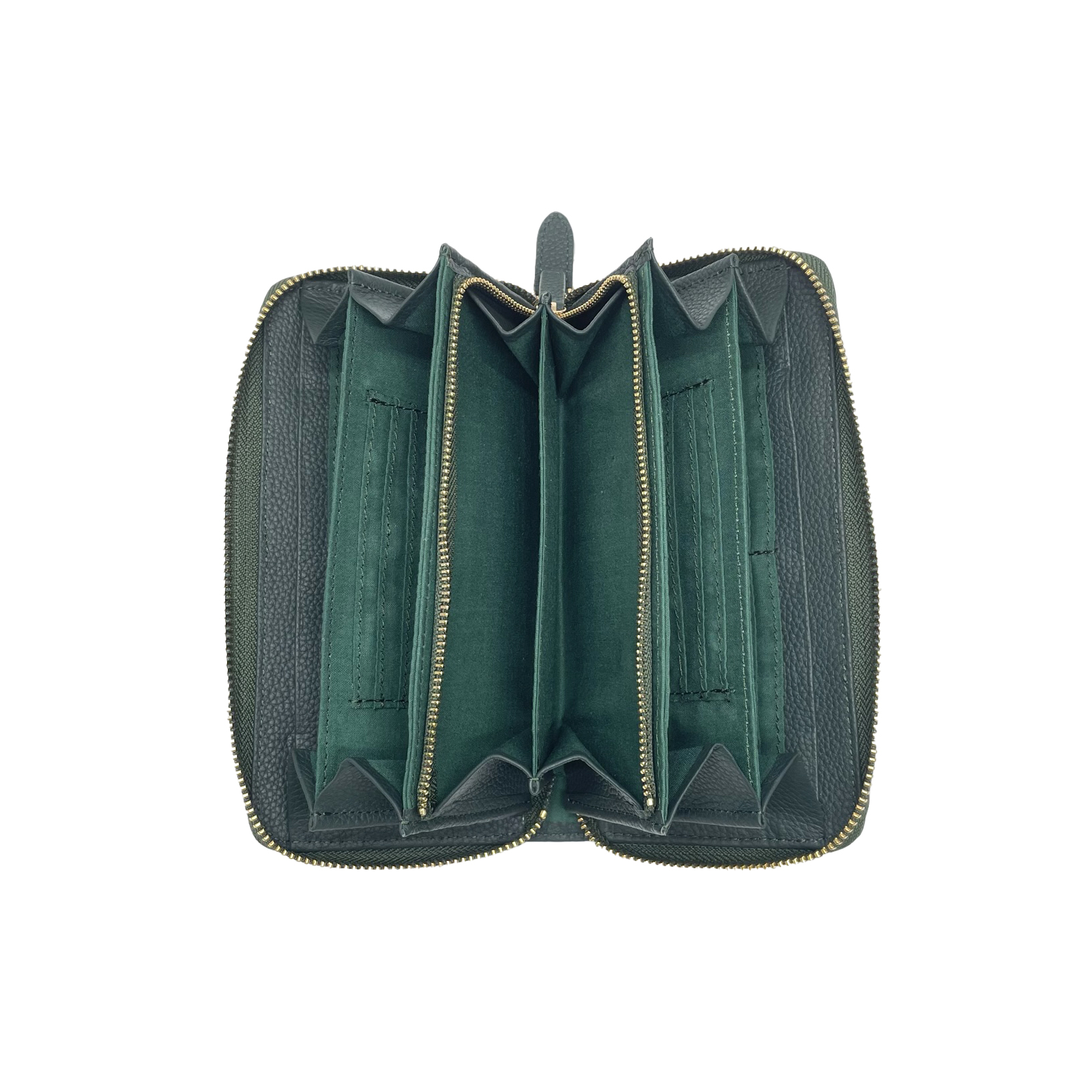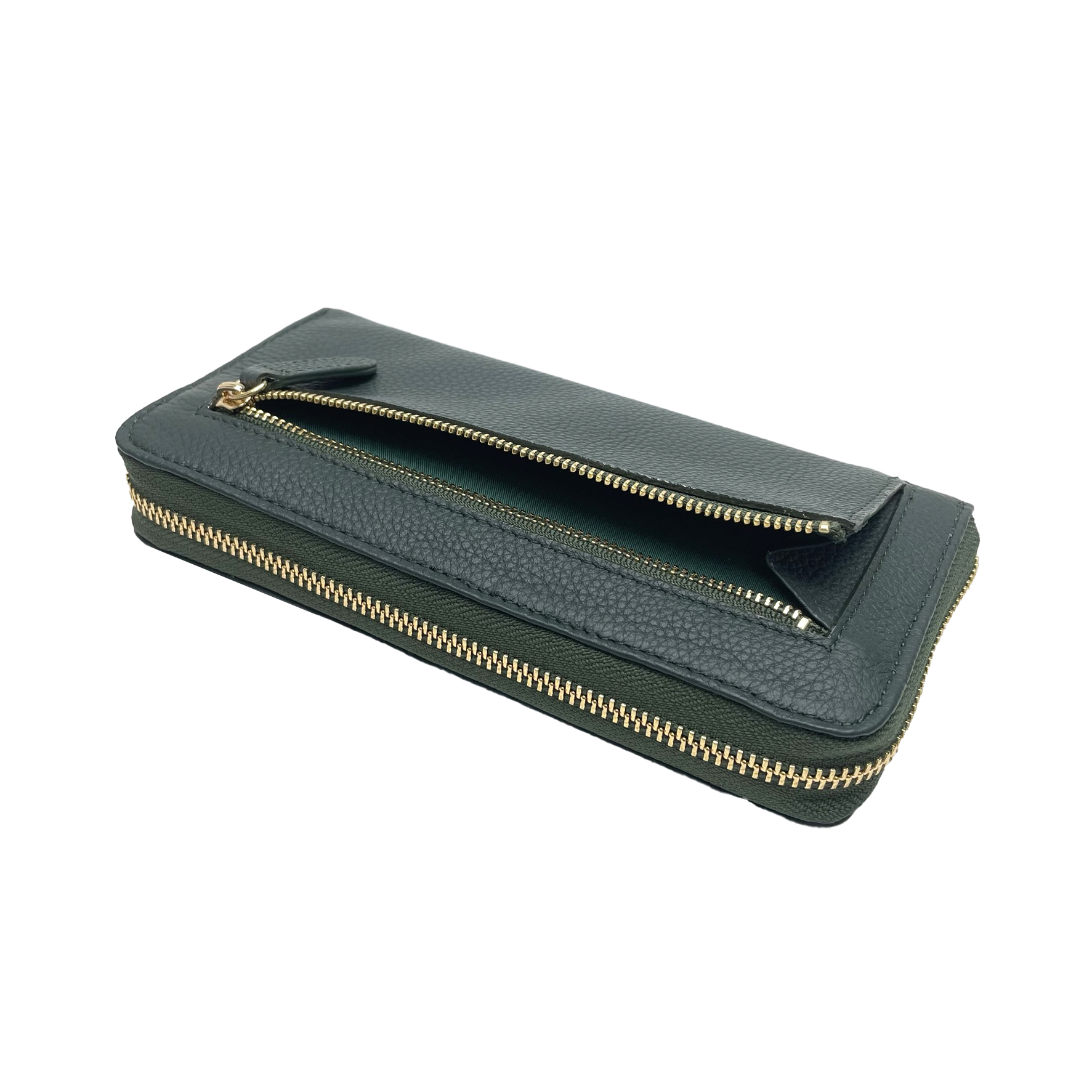 じゃばら式に大きく開くラウンドジップ長財布。24枚のカードポケットとレシートなどを保管するのに便利なポケットを両サイドに配置。外側のポケットも使いやすいササマチ付き。